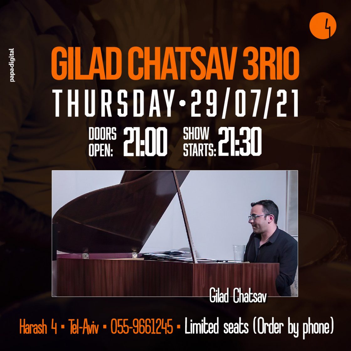 ביום חמישי ה29 ליולי במועדון הרא”ש 4 שבתל אביב – הופעת ג’אז ואחר כך תיקלוטים עד הלילה.